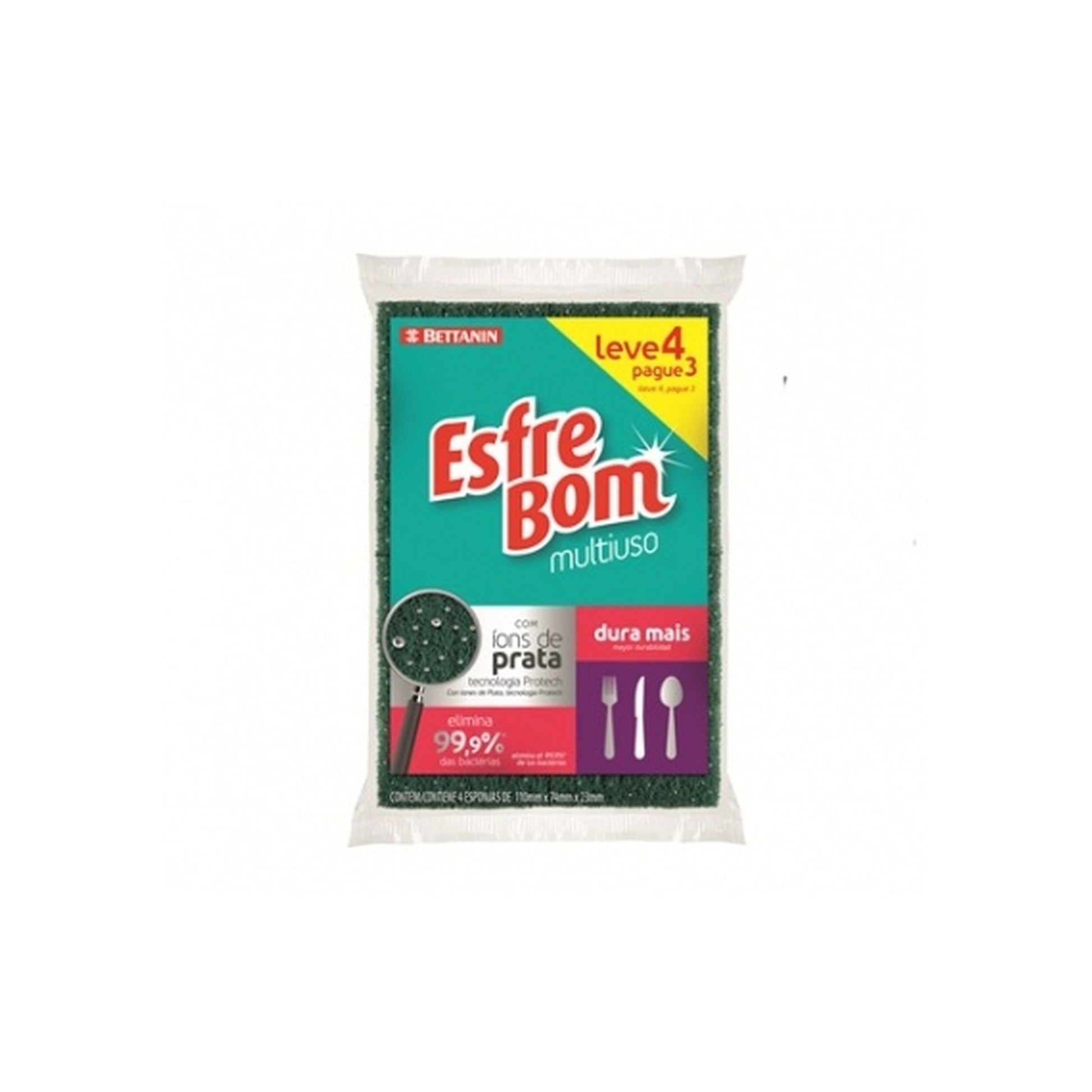 Esponja Esfre-Bom 99.9 % Libre De Bacterias 4 X 3